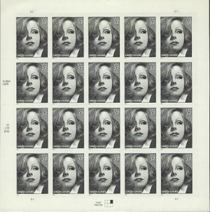 Greta Garbo Full Sheet of Twenty 37 Cent Postage Stamps Scott 3943