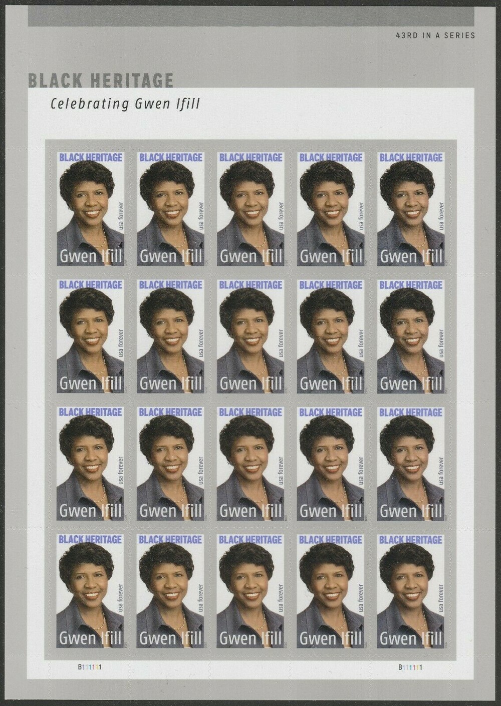 Gwen Ifill Black Heritage Sheet of 20 Current Rate Postage Stamps Scott 5432