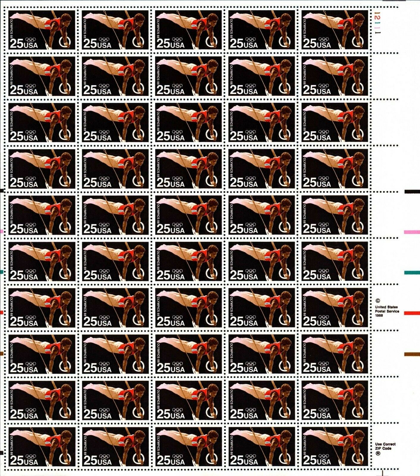 Gymnastics Rings Olympics - Sheet of Fifty 25c Stamps Scott 2380