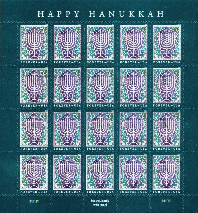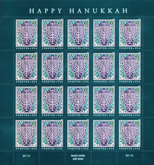 Hanukkah Forever Sheet of 20 Current Rate Stamps Scott 5338