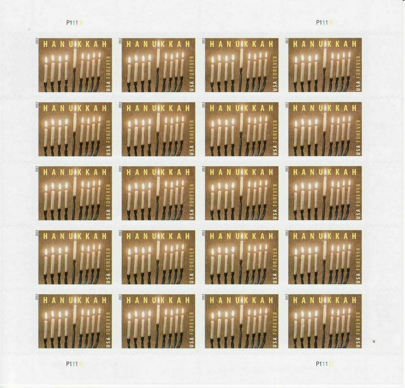Hanukkah Sheet of 20 Current Rate Postage Stamps Scott 4824