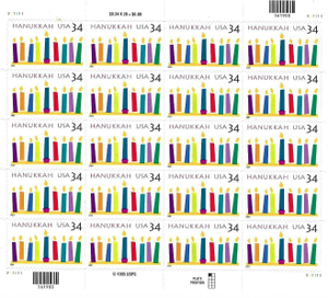 Hanukkah Twenty Sheet of Twenty 34 Cent Postage Stamps Scott 3547