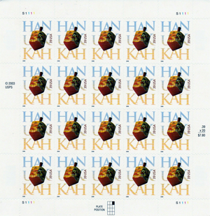 Hanukkah Twenty Sheet of Twenty 39 Cent Postage Stamps Scott 4118