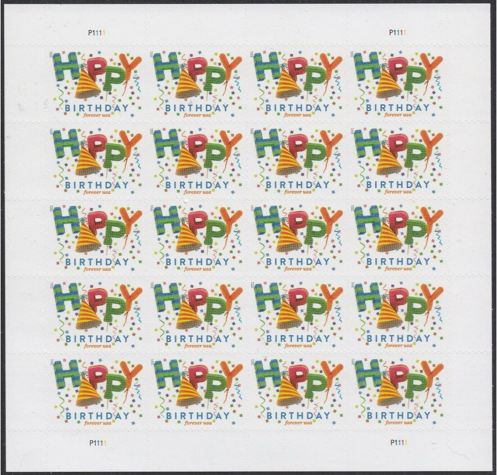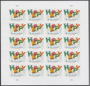 Happy Birthday Sheet of 20 Current Rate Postage Stamps Scott 5635 - Stuart Katz