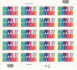 Happy Birthday Sheet of Twenty 37 Cent Stamps Scott 3695