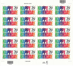 Happy Birthday Sheet of Twenty 39 Cent Stamps Scott 4079