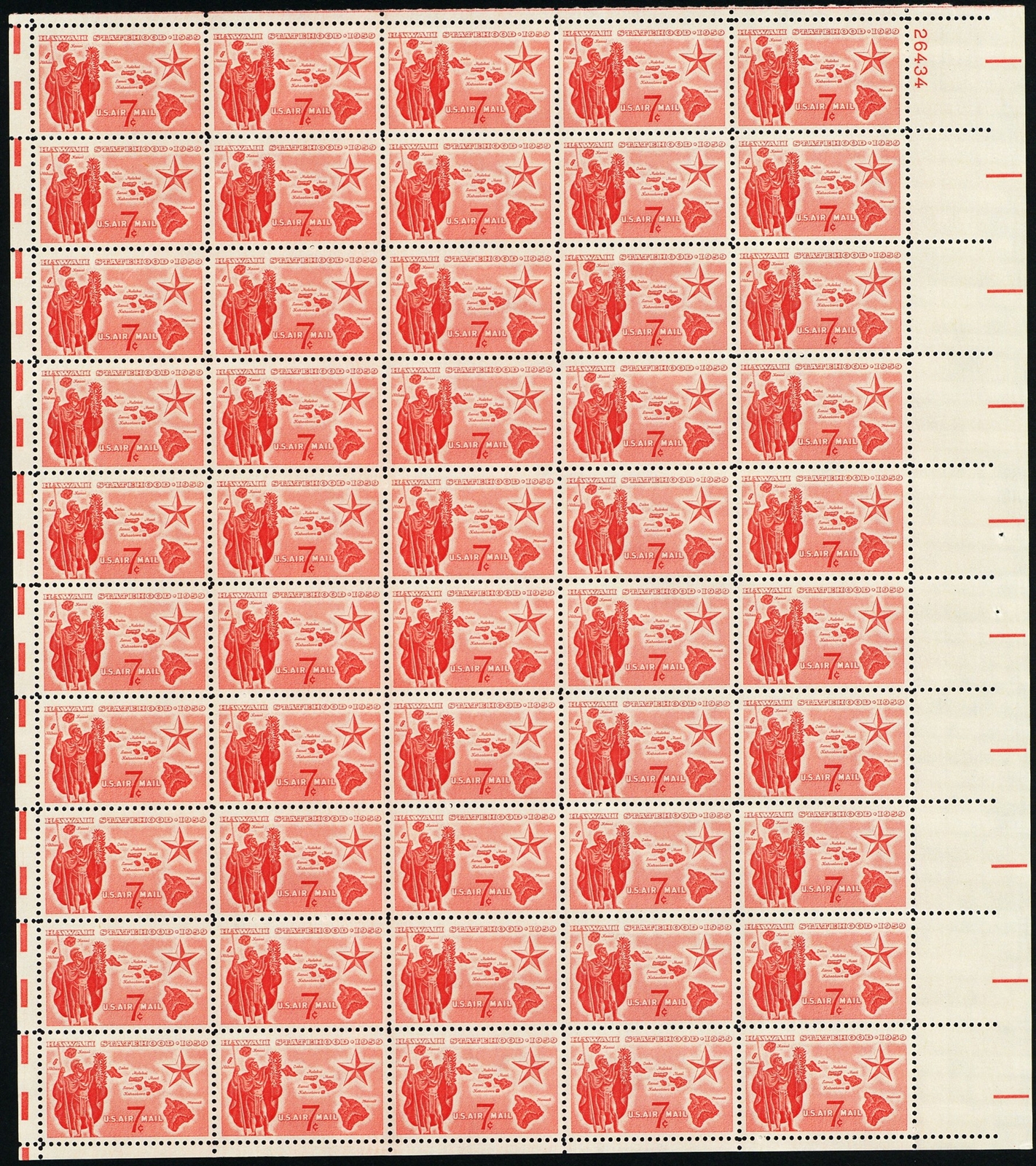 Hawaii Statehood Full Sheet of Fifty 7 Cent Airmail Postage Stamps Scott C55