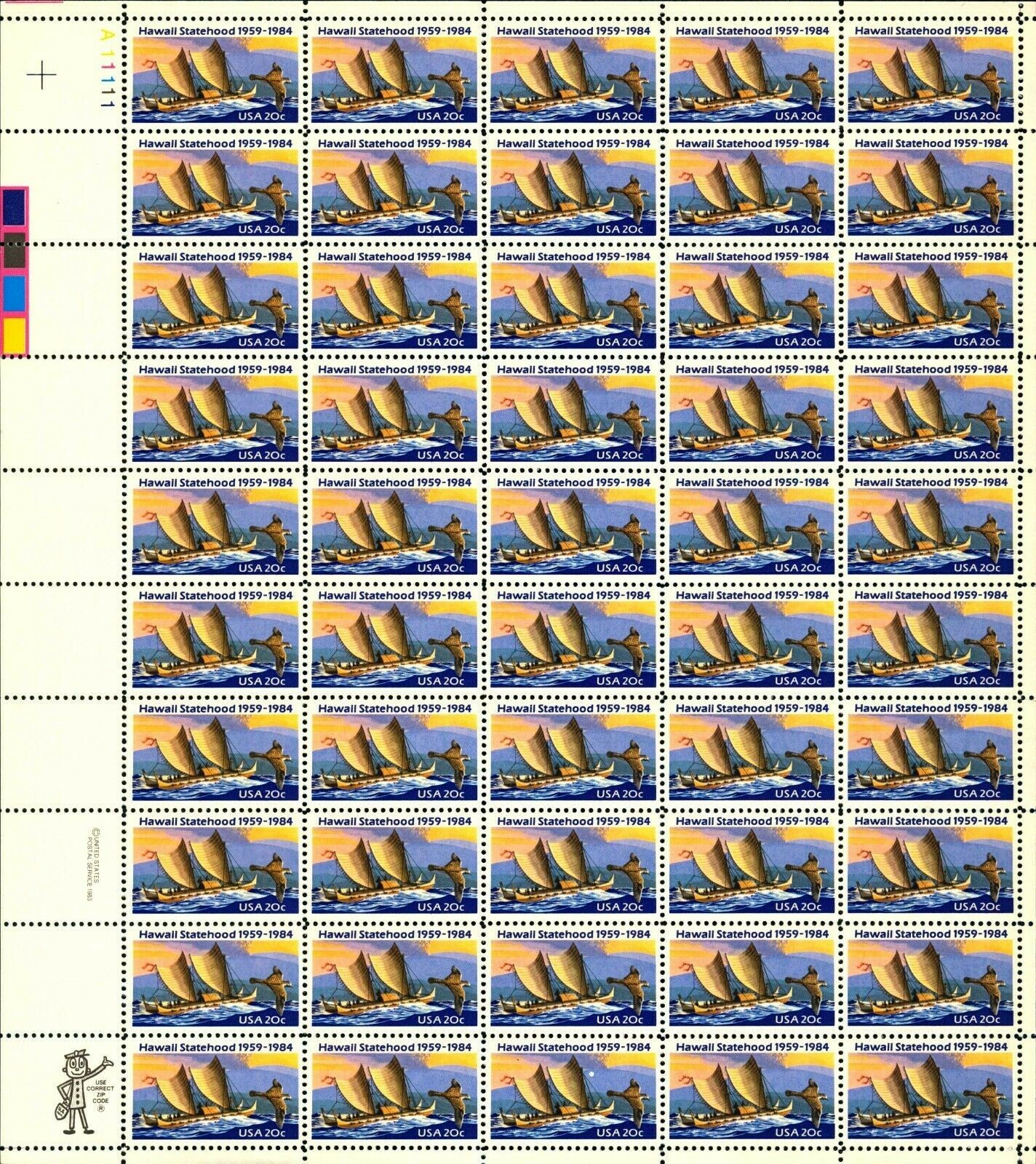 Hawaii Statehood Sheet of Fifty 20 Cent Postage Stamps Scott 2080
