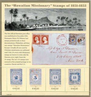 Hawaiian Missionary Stamps Sheet of Four 37 Cent Postage Stamps Scott 3694