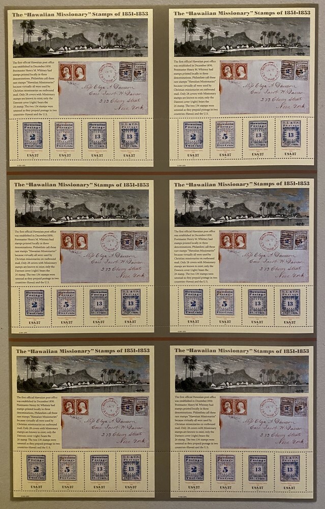 Hawaiian Missionary Uncut Press Sheet of 6 Panes of 4 Stamps Each Scott 3694