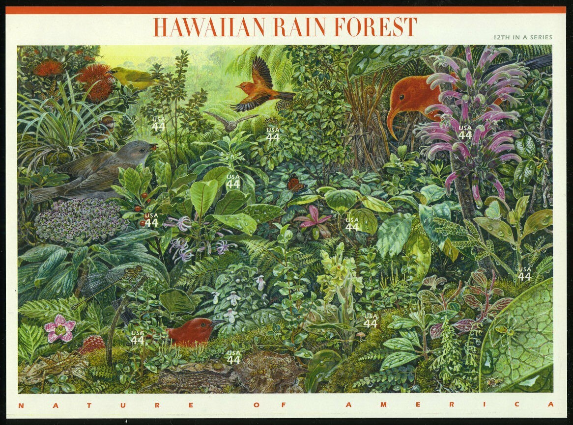 Hawaiian Rain Forest Nature Series Sheet of Ten 44 Cent Stamps Scott 4474