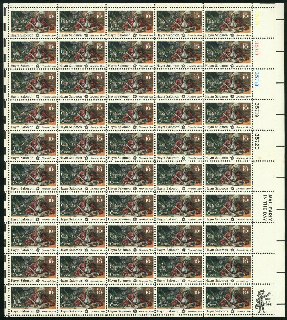 Haym Salomon Sheet of Fifty 10 Cent Postage Stamps Scott 1561