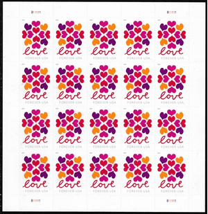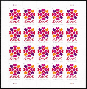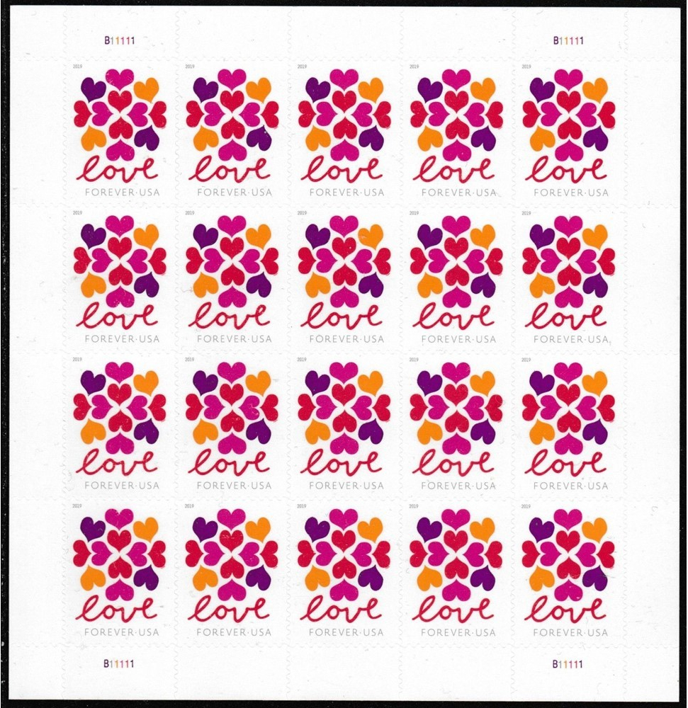 Hearts Blossom Love & Wedding Sheet of 20 Current Rate Stamps Scott 5339