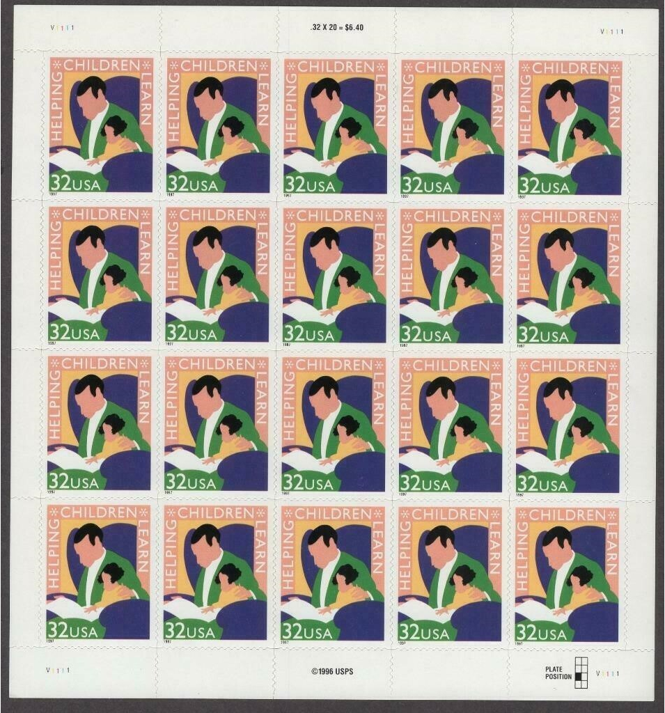 Helping Children Learn Sheet of Twenty 32 Cent Postage Stamps Scott 3125