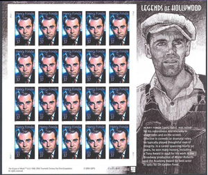 Henry Fonda: Legends of Hollywood Sheet of Twenty 37 Cent Stamps Scott 3911