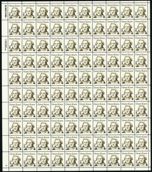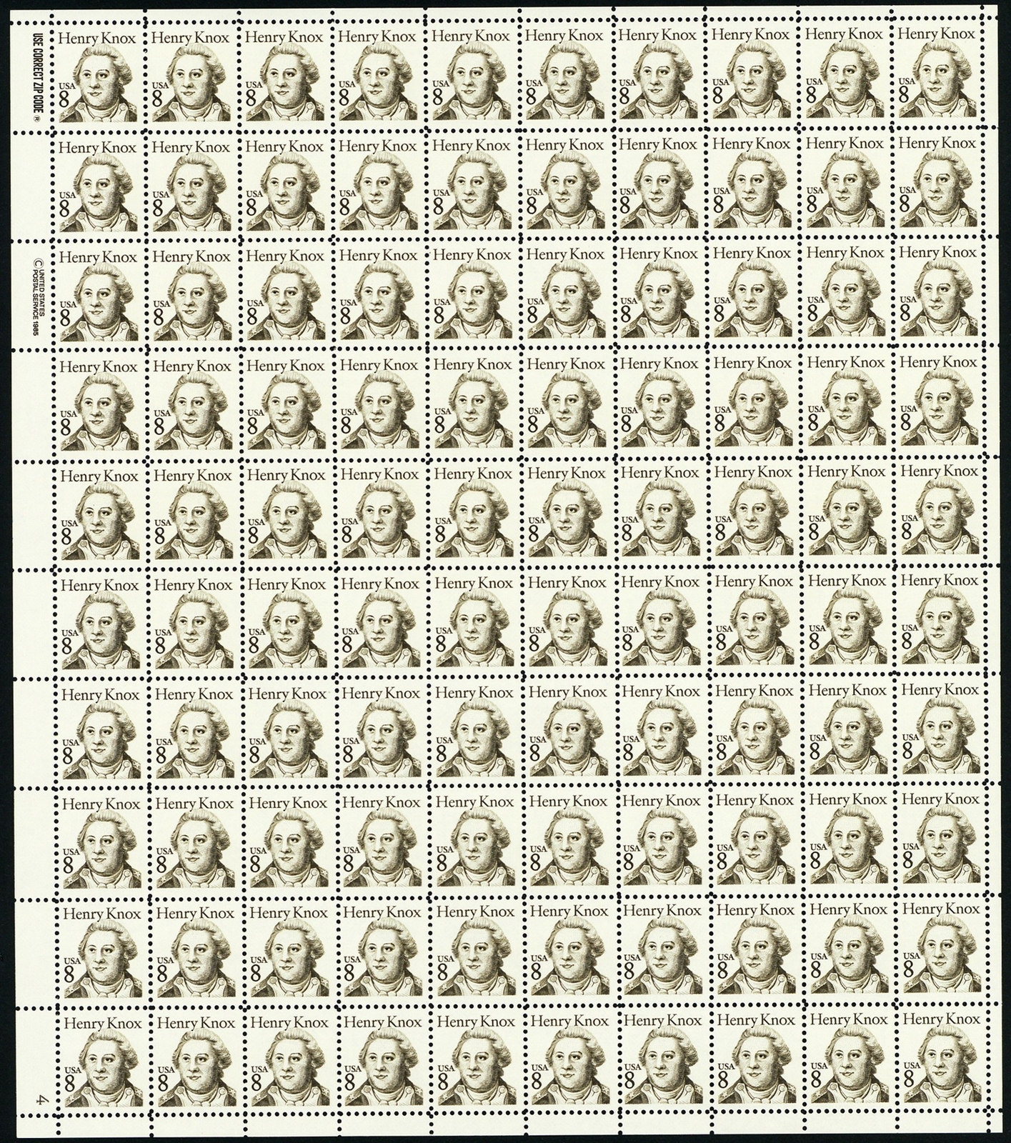 Henry Knox Sheet of One Hundred 8 Cent Postage Stamps Scott 1851