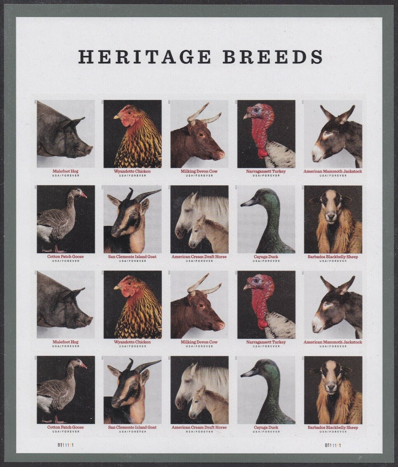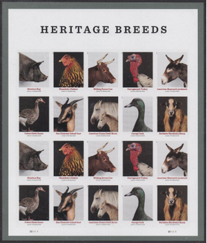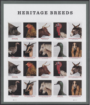 Heritage Breeds Animals - Full Pad of 100 Sheets (2000 Stamps) Scott 5583-92