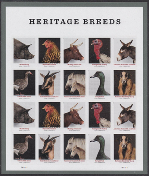 Heritage Breeds Animals Sheet of 20 Current Rate Postage Stamps Scott 5583-92