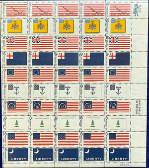 Historic Flag Series Sheet of Fifty 6 Cent Postage Stamps Scott 1345-54