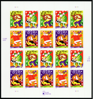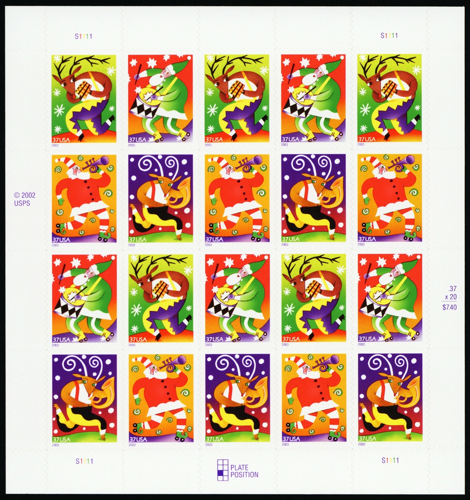Holiday Music Makers Sheet of Twenty 37 Cent Postage Stamps Scott 3824a