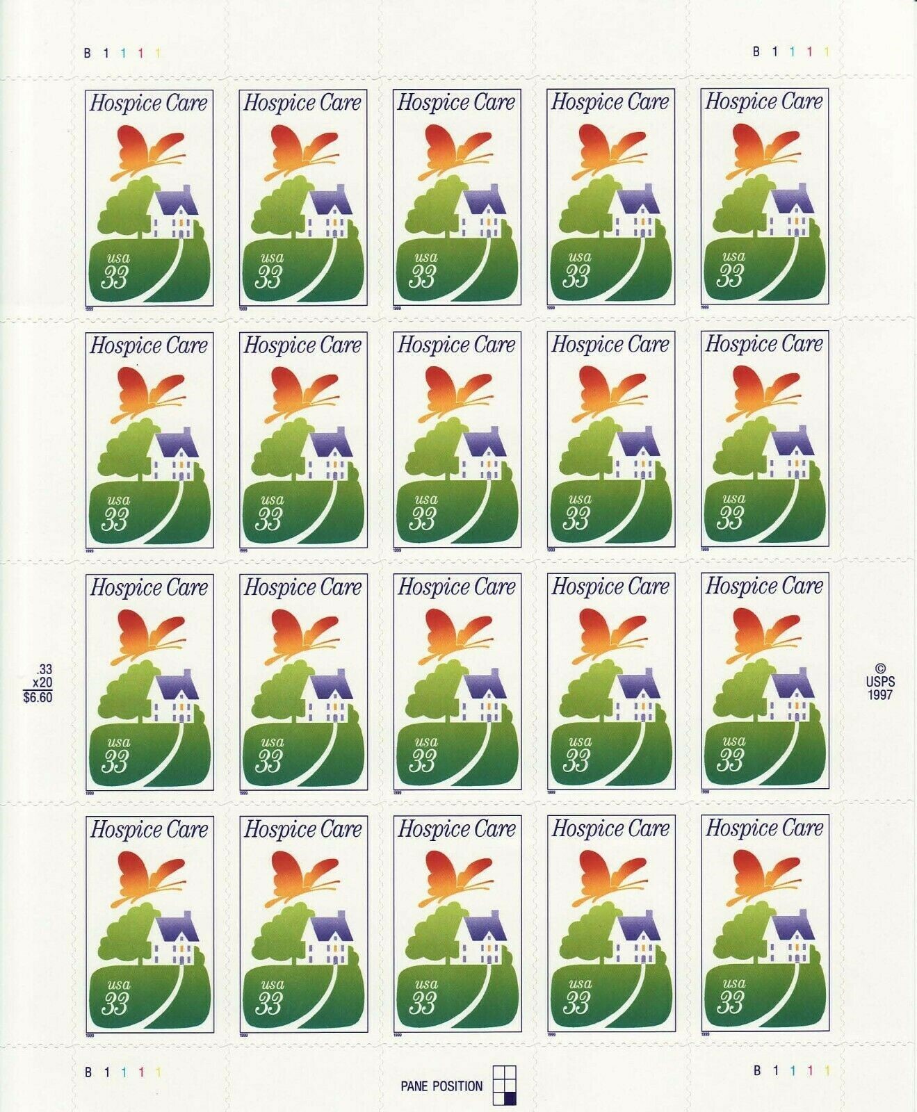 Hospice Care Sheet of Twenty 37 cent US Postage Stamp Scott 3276