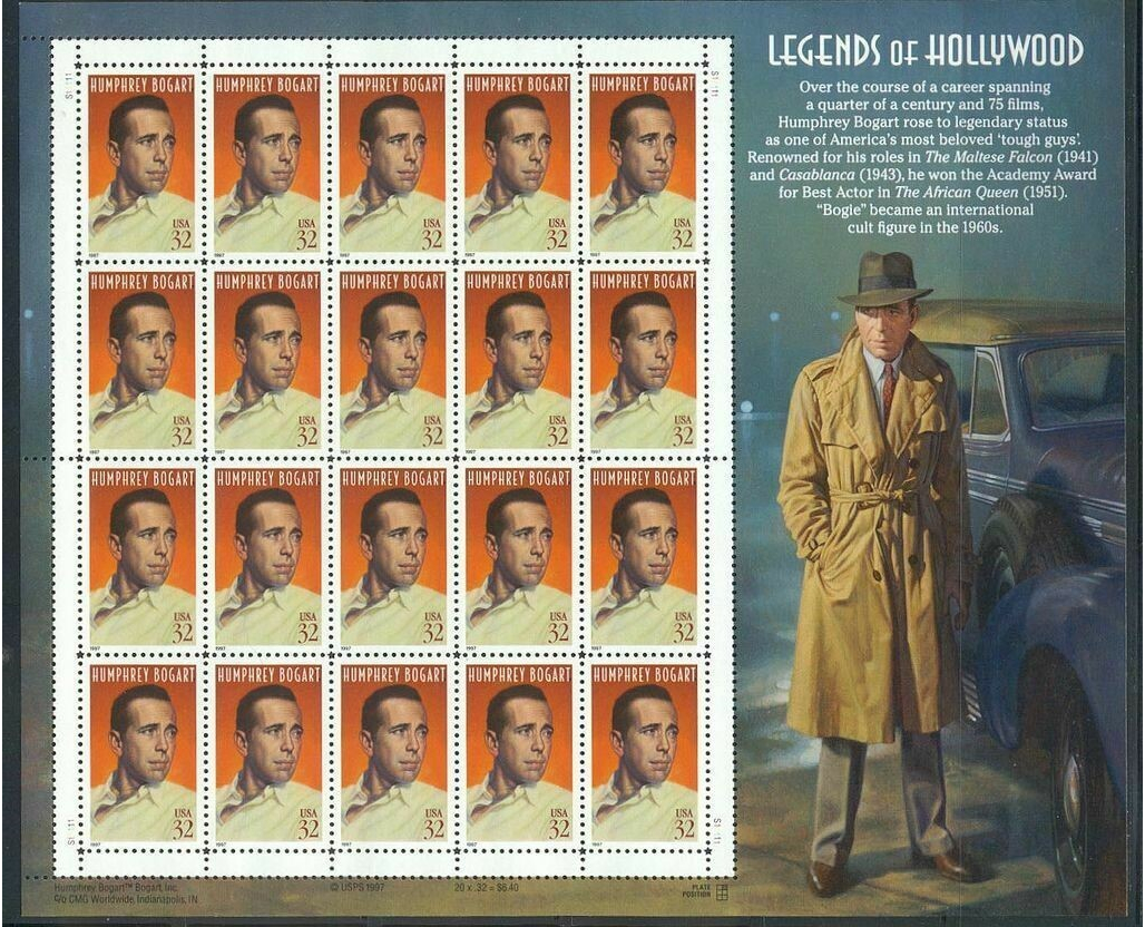 Humphrey Bogart Legends of Hollywood Sheet of Twenty Stamps Scott 3152
