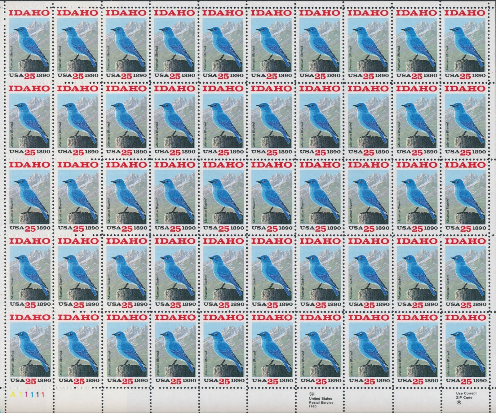 Idaho Statehood Sheet of Fifty 25 Cent Postage Stamps Scott 2439