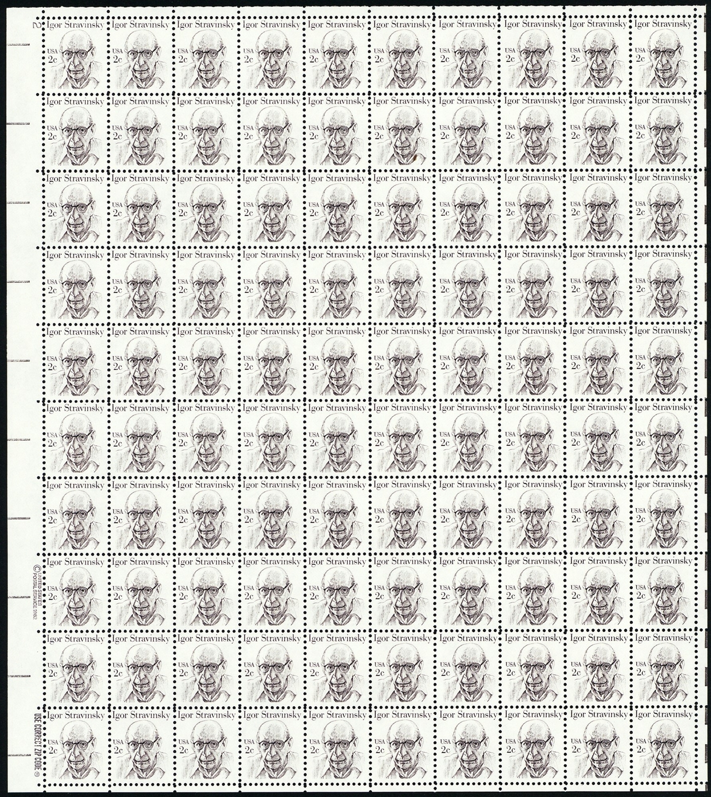 Igor Stravinsky Sheet of One Hundred 2 Cent Postage Stamps Scott 1845