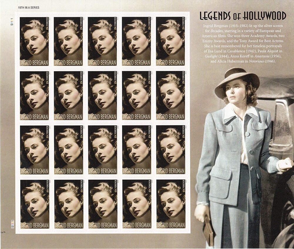 Ingrid Bergman Celebrity Sheet of 20 First Class Stamps Scott 5012