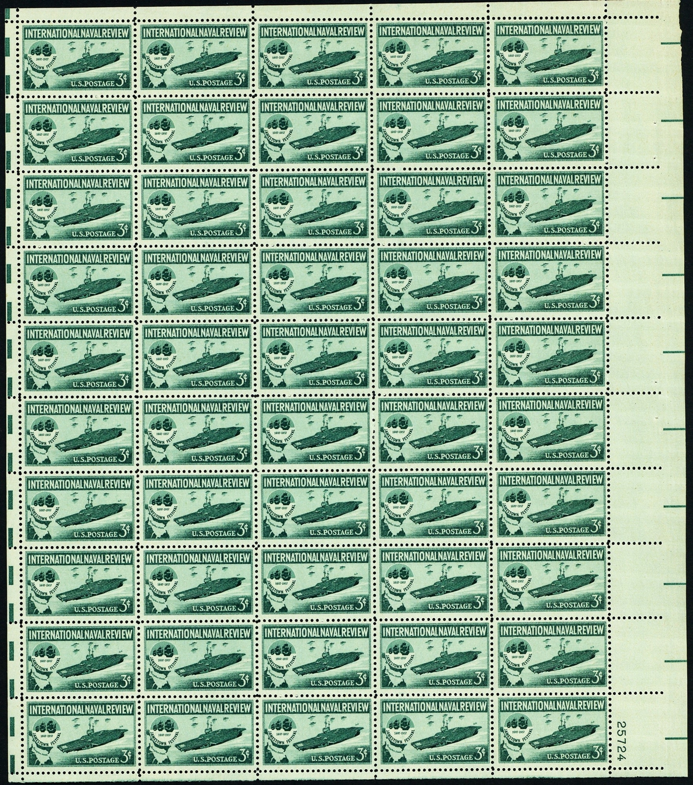 International Naval Review Sheet of Fifty 3 Cent Postage Stamps Scott 1091