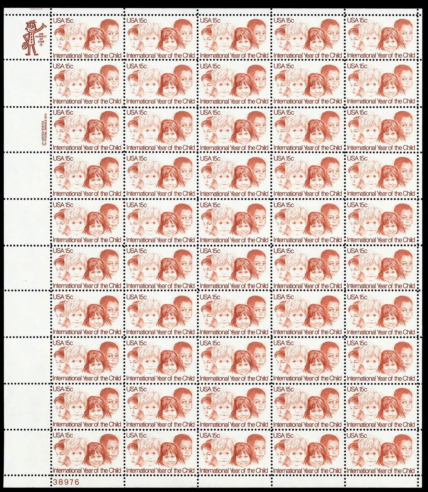 International Year of The Child Sheet of Fifty 15 Cent Postage Stamps Scott 1772