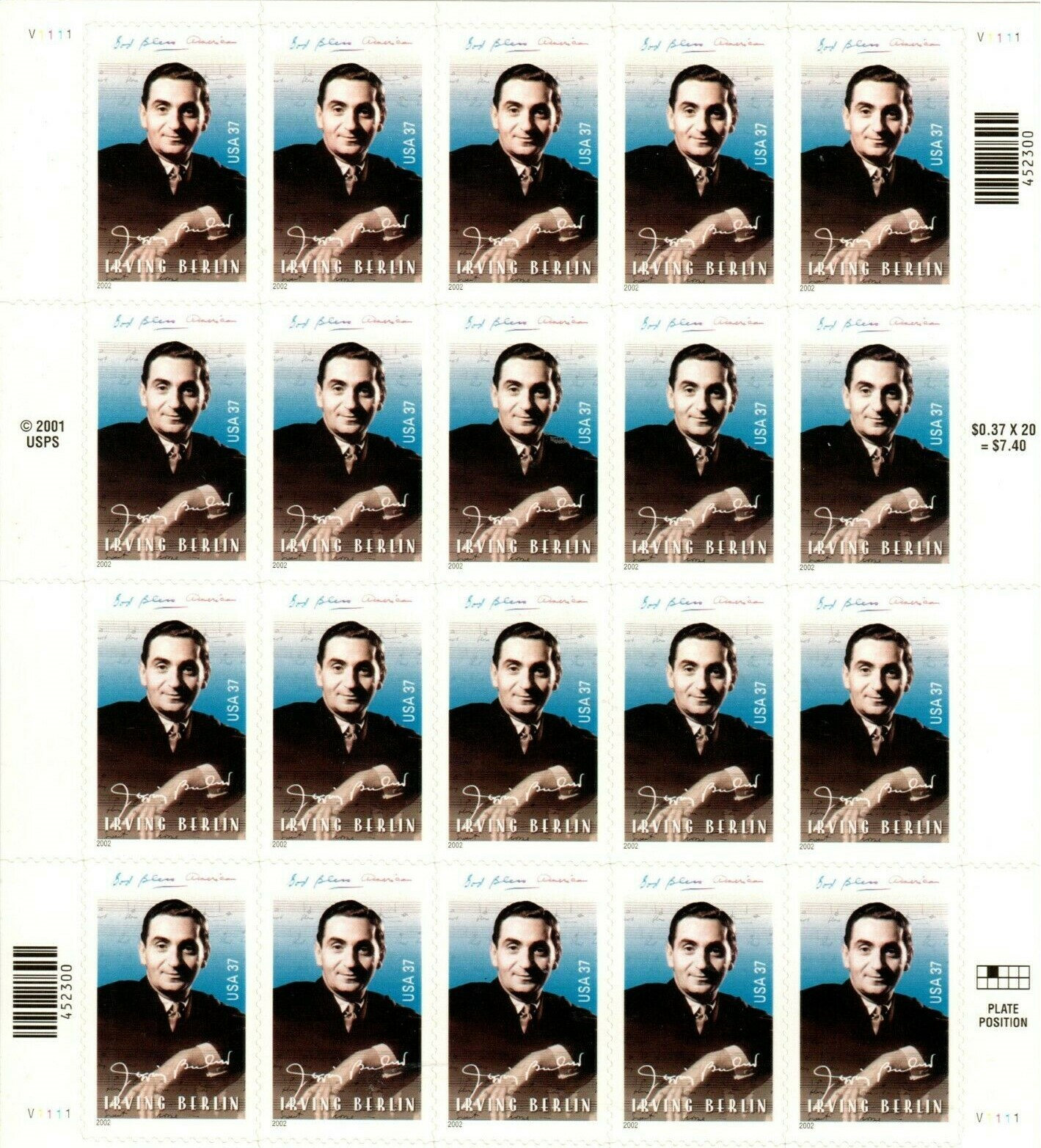 Irving Berlin Sheet of Twenty 37 Cent Postage Stamps Scott 3669