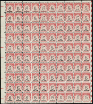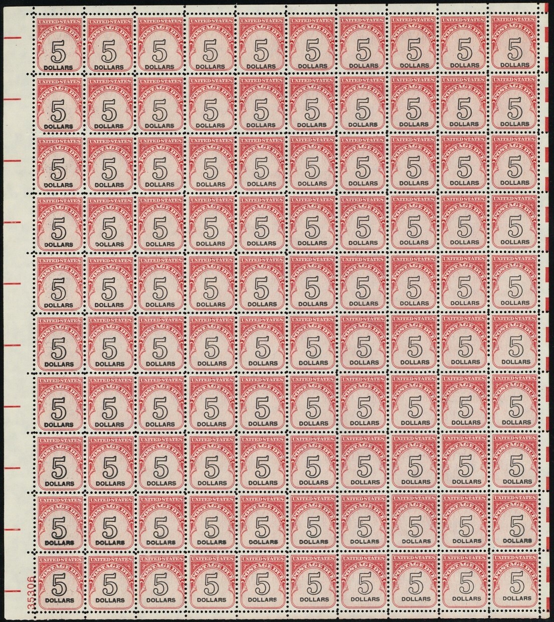 J101, Mint NH $5 (Shiny gum) Complete Sheet of 100 Stamps - Stuart Katz