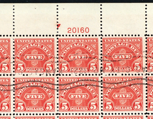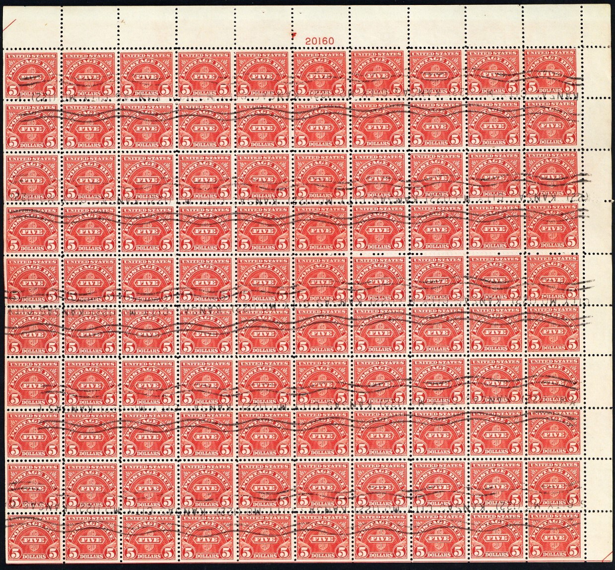 J78, Used Sheet of 100 $5 Postage Due Stamps RARE! *** Stuart Katz