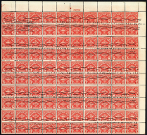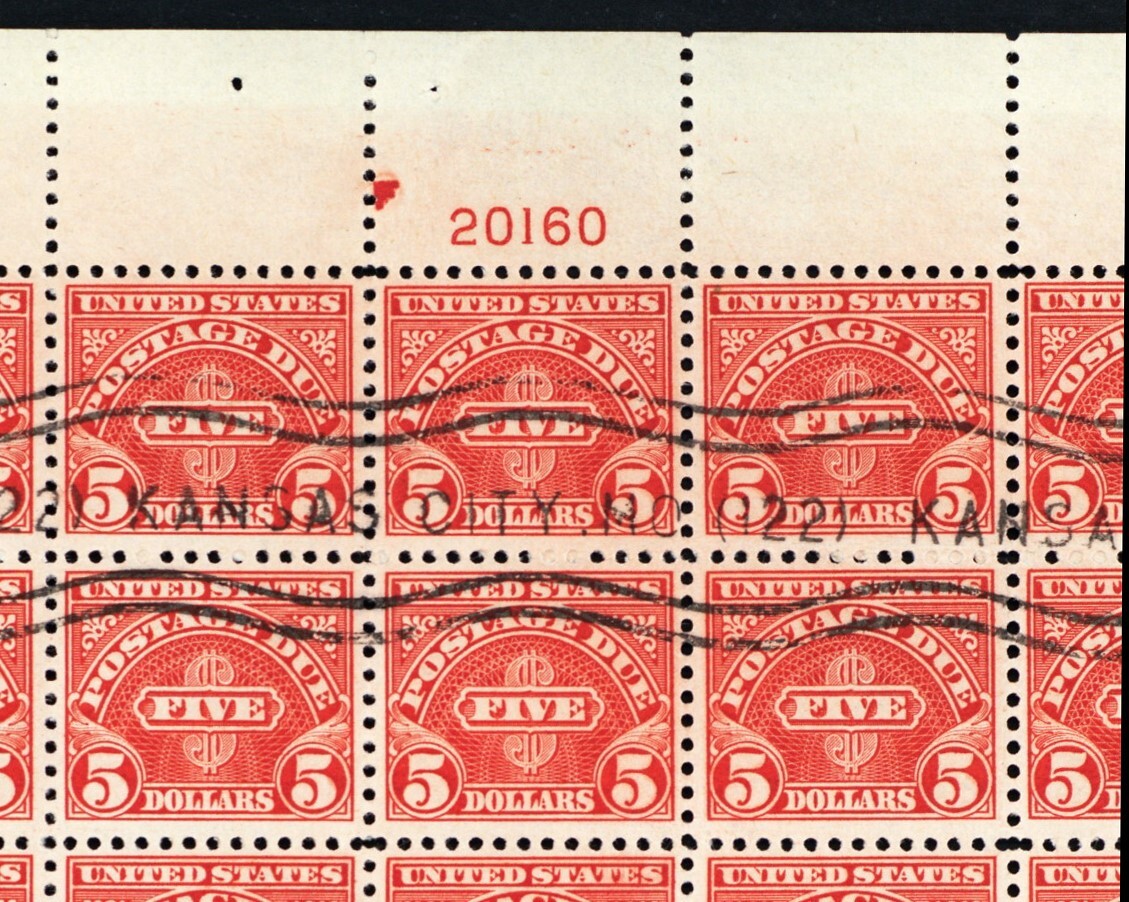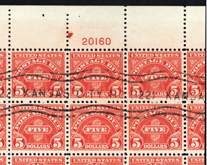 J78, Used Sheet of 100 $5 Postage Due Stamps RARE! * Stuart Katz