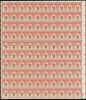 J88, Mint NH 1/2¢ Full Sheet of 100 Postage Due Stamps - Stuart Katz