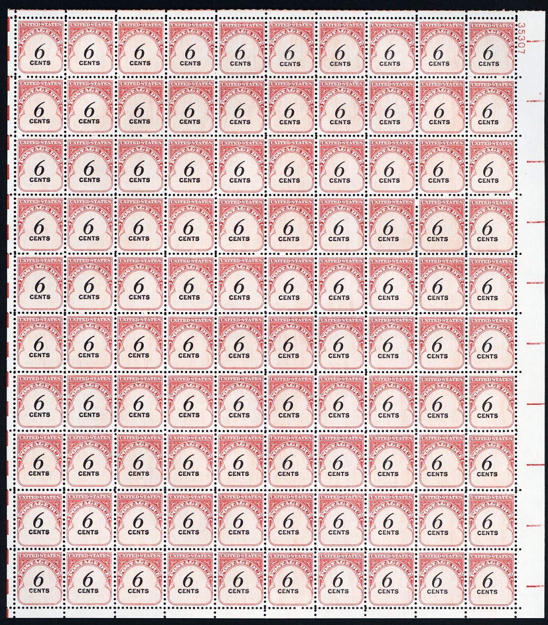 J94, Mint NH 6¢ RARE Dull Gum Sheet of 100 CV $7970.00 - Stuart Katz