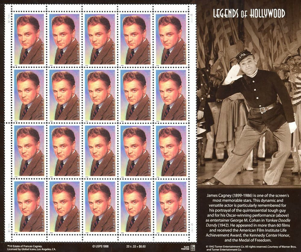 James Cagney Legends of Hollywood Sheet of Twenty Scott 3329