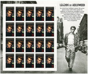 James Dean: Legends of Hollywood Sheet of Twenty Stamps Scott 3082