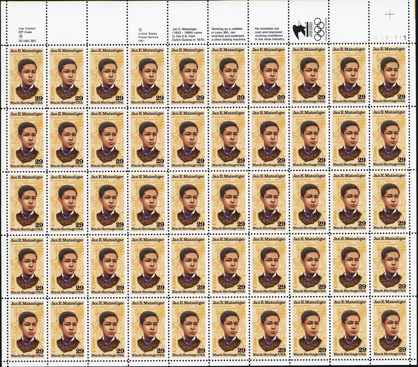 Jan Ernst Matzeliger Black Heritage Sheet of Fifty 29 Cent Stamps Scott 2567