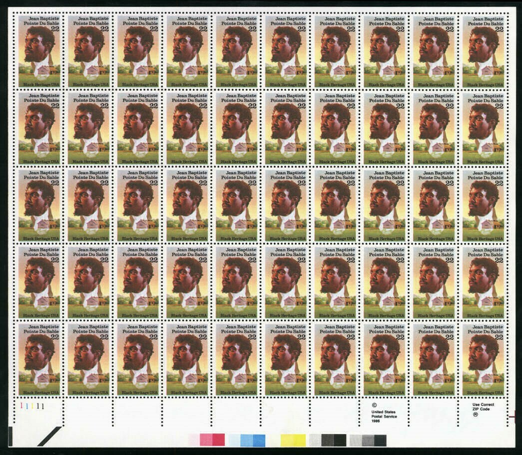 Jean Baptiste Pointe du Sable Sheet of Fifty 22 Cent Postage Stamps Scott 2249
