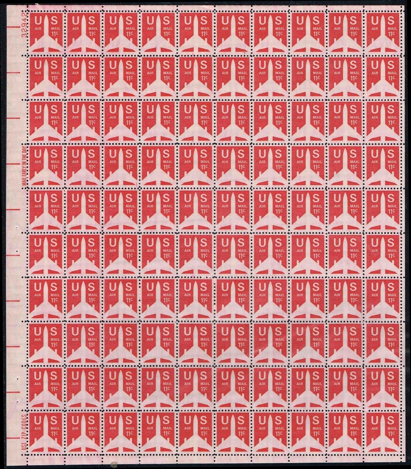 Jet Airliner Full Sheet of One Hundred 11 Cent Airmail Postage Stamps Scott C78