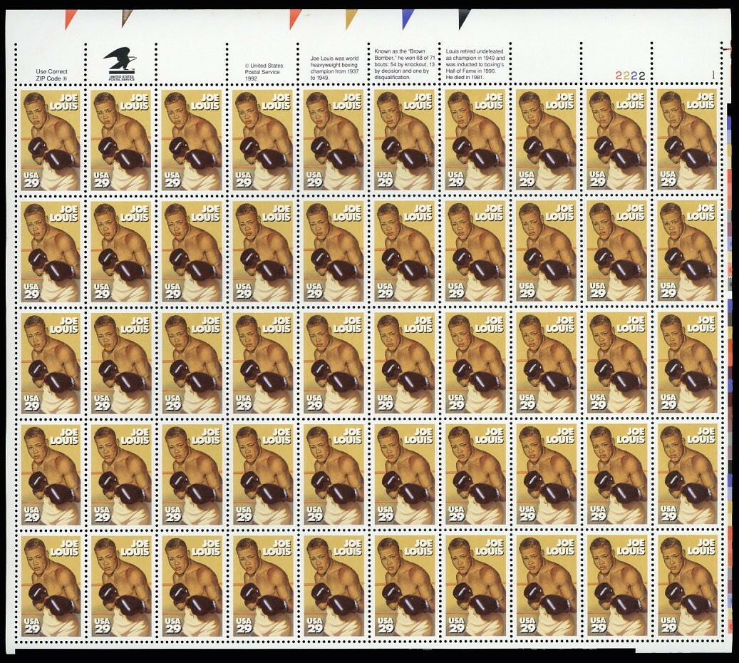 Joe Louis Sheet of Fifty 29 Cent Postage Stamps Scott 2766