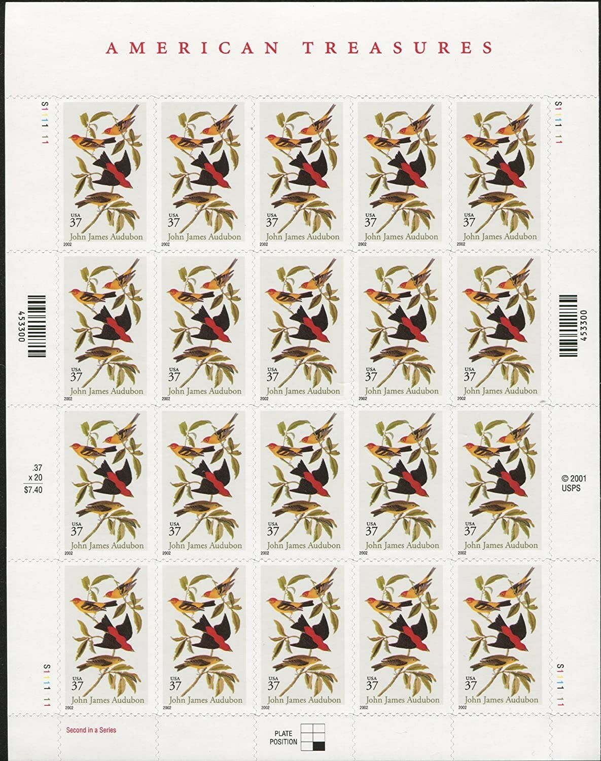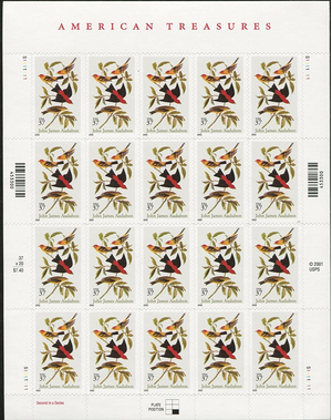 John James Audubon American Treasures Sheet of 20 Scott 3650