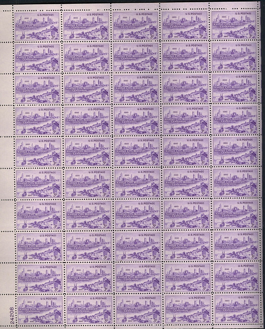 Kansas City Skyline Sheet of Fifty 3 Cent Postage Stamps Scott 994