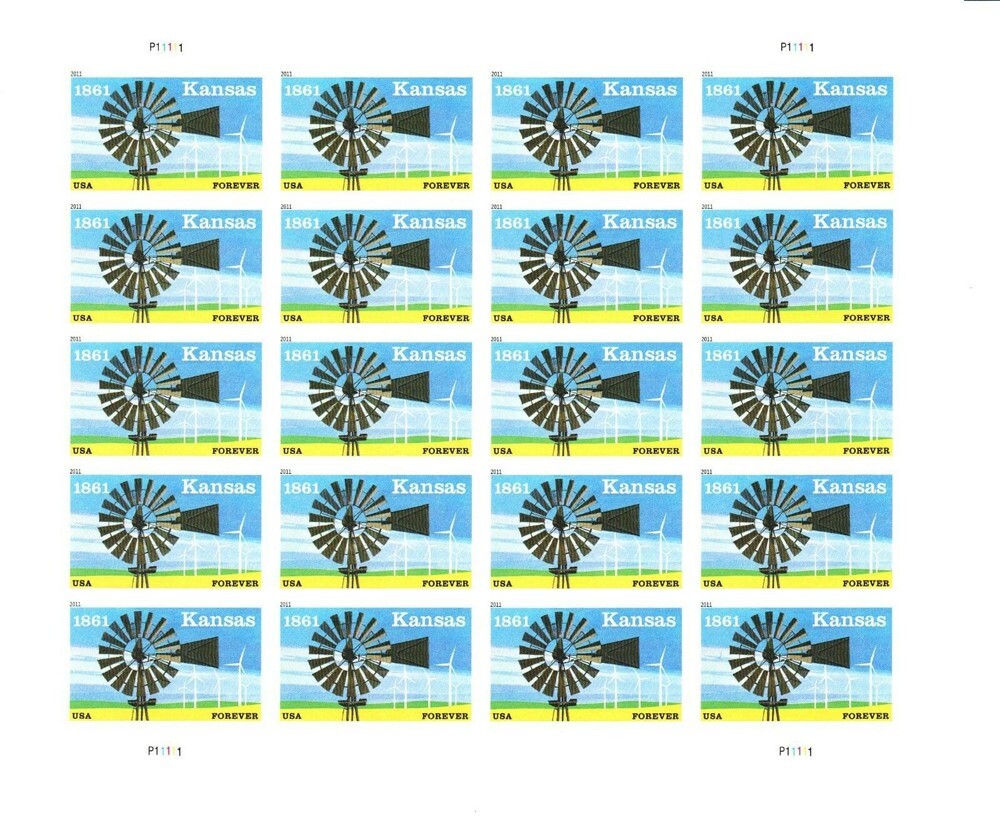 Kansas Statehood Sheet of 20 Current Rate Postage Stamps Scott 4493