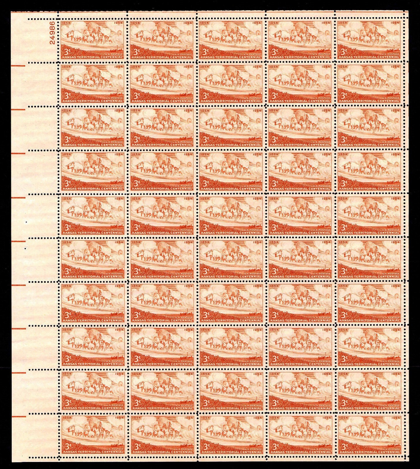 Kansas Territory Sheet of Fifty 3 Cent Postage Stamps Scott 1061