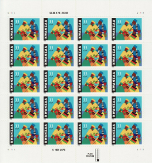 Kwanzaa Celebration Sheet of Twenty 33 Cent Postage Stamps Scott 3368