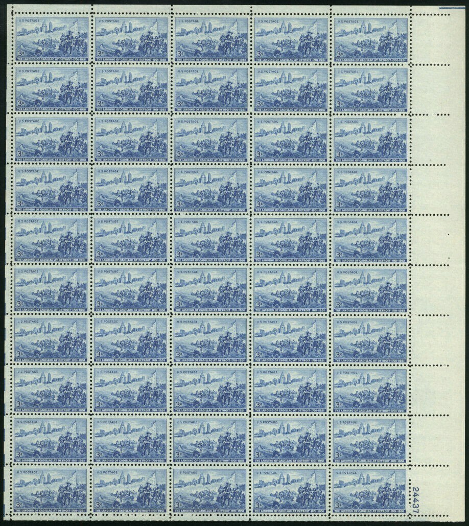 Landing of Cadillac Sheet of Fifty 3 Cent Postage Stamps Scott 1000