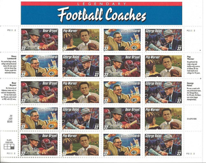 Legendary Football Coaches Sheet of Twenty 32 Cent Postage Stamps Scott 3143